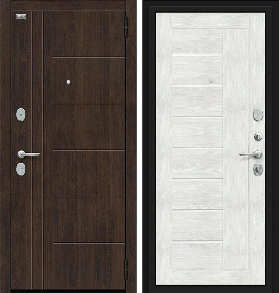 Семь усиливающих уголков и защитный карман для замков. Дополнительную стойкость ко взлому обеспечивают два противосъемных штыря.